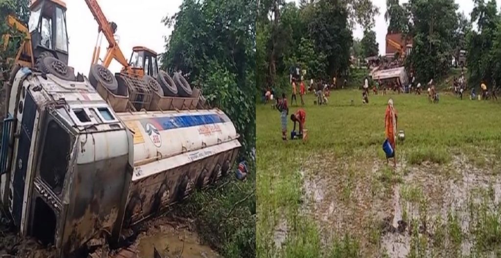 दरअसल, बुधवार शाम को रतनपुर थाना क्षेत्र के खूंटाघाट डेम के पास पलट गई थी और टैंकर में भरा डीजल पास के लगे एक खेत में बह गया। हालांकि राहत वाली बात यह रही कि इस घटना में किसी प्रकार की जनहानि नहीं हुई। लेकिन ग्रामीणों को जैसी ही इसकी खबर मिली सब एक के बाद एक करके डीजल लूटने टूट पडे। जिसे जो बर्तन मिला, डब्बा मिला वो वही लेकर मौके पर पहुंच गया और डीजल भरने लगा। फिलहाल पुलिस यह पता लगा रही है कि टैंकर किसका था और कहां से आ रहा था। इधर, टैंकर को अब भी निकाला नहीं जा सका है और ड्राइवर को हल्की चोटें लगी हैं।
