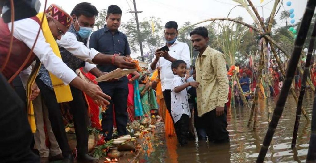 रायपुर// मुख्यमंत्री शभूपेश बघेल आज छठ पर्व के अवसर पर भिलाई-खुर्सीपार में छठ पूजा कार्यक्रम में शामिल हुए। यहा डूबते सूर्य को अर्ध्य देने एकजुट हुए हजारों छठ व्रतियों के साथ उन्होंने पूजा कर सबको बधाई तथा शुभकामनाएं दी। उन्होंने इस मौके पर प्रदेशवासियों की सुख, समृद्धि और खुशहाली की मंगल कामना की।