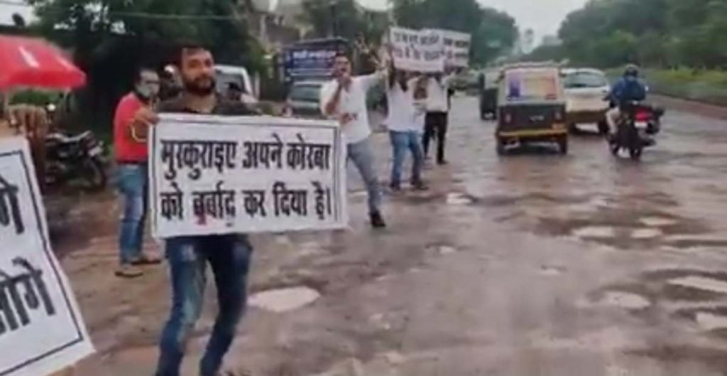 कोरबा// बारिश का मौसम आते ही सड़कों की हाल बेहाल होने लगती है, कहीं गड्ढे पर सड़क तो कहीं सड़क पर गड्ढे नजर आने लगती है ऐसे में लोगो का आक्रोश वाजिब है। इस परिस्थिति में अपने आक्रोश का प्रदर्शन लोग सोशल मीडिया में वीडियो/फ़ोटो के माध्यम से करते है। पर जब आक्रोश जताने के तरीका अनोखा हो तो न चाहते हुए भी यूज़र्स की नजर इन वीडिओज़ पर पड़ती है। ऐसा ही एक मामला कोरबा जिले में देखने को मिली है जो वर्तमान में सोशल मीडिया में खूब छाया हुआ है।