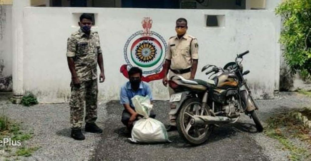 जानकारी के अनुसार दिनांक 05/08/2021 को थाना प्रभारी डोंगरीपाली निरीक्षक जितेन्द्र एसैया को मुखबिर से सूचना मिला कि एक व्यक्ति काला पीला रंग के मोटर सायकल में अवैध मादक पदार्थ गांजा लेकर सोहेला बरमकेला रोड से जाने वाला है। सूचना पर थाना प्रभारी वरिष्ठ अधिकारियों को सूचना से अवगत कराकर हमराह आरक्षक विनय तिवारी, किशोर एक्का, जयमन एक्का के साथ गांजा रेड कार्रवाई के लिये सोहेला-बरमकेला मुख्य मार्ग पर डोंगरीपाली गैस गोदाम के पास नाकेबंदी किया। इसी दरम्यान होण्डा स्पेलेन्डर मोटर सायकल क्रमांक- CG12 AP-1861 के सामने एक सफेद रंग प्लास्टिक झोला लेकर आते व्यक्ति को स्टाफ द्वारा रोककर चेक किया गया, जिसके पास से 02 पैकेट में 04 कि.ग्रा. कीमती करीबन 24,000/- रूपये मिला।
