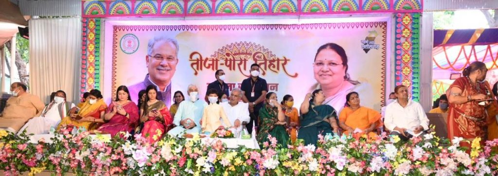 मुख्यमंत्री निवास में हर साल की तरह इस साल भी तीजा-पोरा का त्यौहार परम्परागत ढ़ंग से आज मनाया गया है। मुख्यमंत्री निवास को मयका मान कर राज्यभर की माताएं-बहनें त्यौहार मनाने पहुचीं। मुख्यमंत्री भूपेश बघेल ने तीजा-पोरा मनाने पहुचीं सभी माताओं-बहनों का स्वागत करते हुए उन्हें बधाई और शुभकामनाएं दी। माताओं-बहनों को तीजा-पोरा की परम्परा के अनुसार उपहार भी भेंट किए गए।