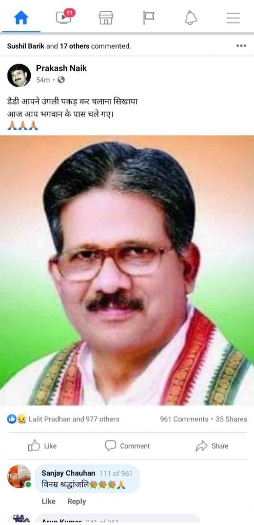 बता दें, डॉ शक्राजीत नायक रायगढ़ विधायक और पिछड़ा वर्ग विकास प्राधिकरण उपाध्यक्ष प्रकाश नायक के पिता थे। वही इनकी मौत पर मुख्यमंत्री बघेल ने ट्वीट कर दुख व्यक्त किया है ।