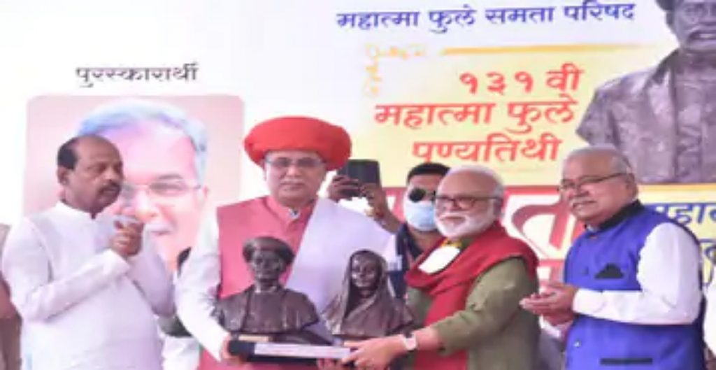 आयोजकों ने बताया, मुख्यमंत्री भूपेश बघेल को अपने कार्यकाल के दौरान समाज के वंचित वर्गों को न्याय दिलाने की दिशा में लिए गए फैसलों और असाधारण महत्वपूर्ण कार्यों के लिए इस वर्ष के महात्मा फुले समता पुरस्कार के लिए चुना गया है। पुरस्कार समारोह में मुख्यमंत्री को ज्योतिबा फुले की पुस्तक किसान का कोड़ा की प्रति भेंट की गई। इसके पहले मुख्यमंत्री ने महात्मा फुले स्मारक समता भूमि में महात्मा फुले और सावित्री बाई फुले की प्रतिमा पर माल्यार्पण कर उन्हें नमन किया।