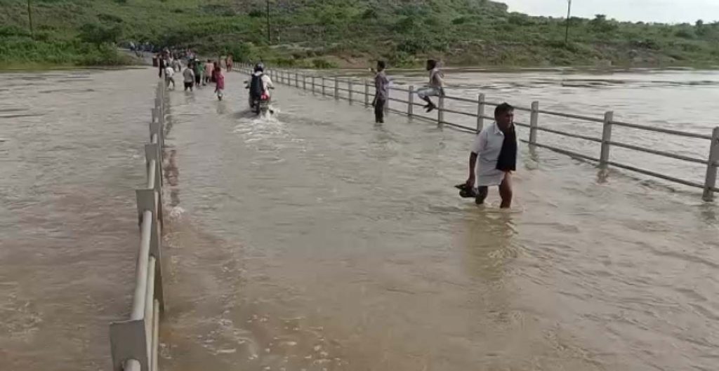 रायगढ़// जिले भर में विगत दो तीन दिन से हो रही बारिश के कारण आस-पास के नदी-नाले उफान पर है। दूसरी ओर महानदी का जलस्तर बढ़ने से सारंगढ़ तहसील अंतर्गत ग्राम पंचायत टिमरलगा का लात नाला का जल स्तर बढ़ गया। लात नाला पूल के उपर करीब चार फीट पानी बह रहा है। सरिया मार्ग के कुछ अन्य छोटे पूल भी जलमग्न हो गए हैं। पूल के उपर से पानी बहने से चंद्रपुर से सरिया-बरमकेला मार्ग में आवागमन पूरी तरह से बंद करा दिया गया है। प्रशासनिक की टीम ने सुरक्षागत कारणों से यहां बेरिकेड लगा दिए हैं। बाढ़ की स्थिति को देखते हुए लोगों को पूल पार करने से रोकने के लिए यहां पुलिस बल तैनात किया गया है।