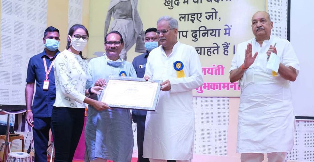 मुख्यमंत्री बघेल ने कार्यक्रम को संबोधित करते हुए कहा कि आजादी के 75वें वर्ष में आजादी की लड़ाई के मूल्यों, सिद्धांतों, आदर्शों तथा महात्मा गांधी की ग्राम-स्वराज की संकल्पना को अक्षुण्ण बनाए रखने के लिए नवा-रायपुर में भी वर्धा की तर्ज पर सेवा-ग्राम की स्थापना की जाएगी। नवा-रायपुर में लगभग 75 से 100 एकड़ भूमि पर विकसित होने वाले इस संस्थान में ग्रामीण अर्थव्यवस्था को सुदृढ़ करने एवं आत्मनिर्भर-ग्राम की कल्पना को साकार करने के लिए सभी प्रकार के कारीगरों के प्रशिक्षण की व्यवस्था की जाएगी। उन्होंने कहा कि नयी पीढी को महात्मा गांधी के आदर्शाे और सिद्धांतों से परिचित कराने के लिए कक्षा 5वीं से 12वीं के शैक्षणिक पाठ्यक्रम में महात्मा गांधी की बुनियादी शिक्षा को शामिल किया जाएगा। महात्मा गांधी के आत्मनिर्भर ग्राम की संकल्पना और ग्रामीण जन-जीवन से परिचित कराने के लिए स्कूली बच्चों को गांवों का भ्रमण कराया जाएगा।