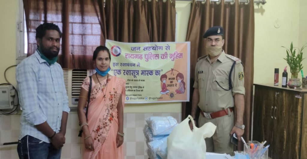 रायगढ़// प्रदेश सहित जिले में बढ़ते हुए कोरोना वायरस के मामलों को देखते हुए रायगढ़ पुलिस द्वारा “एक रक्षासूत्र मॉस्क का” मुहिम चलाया जा रहा है जिसके तहत इस रक्षाबंधन के दिन रायगढ़ पुलिस विभाग द्वारा घर घर जाकर लोगो को मास्क का वितरण किया जाएगा। इसके साथ ही लोगो को सोशल और फिजिकल डिस्टेनसिंग के बारे में जानकारी देते हुए उनको कोरोना वायरस की रोकथाम के लिए जागरूक किया जाएगा।