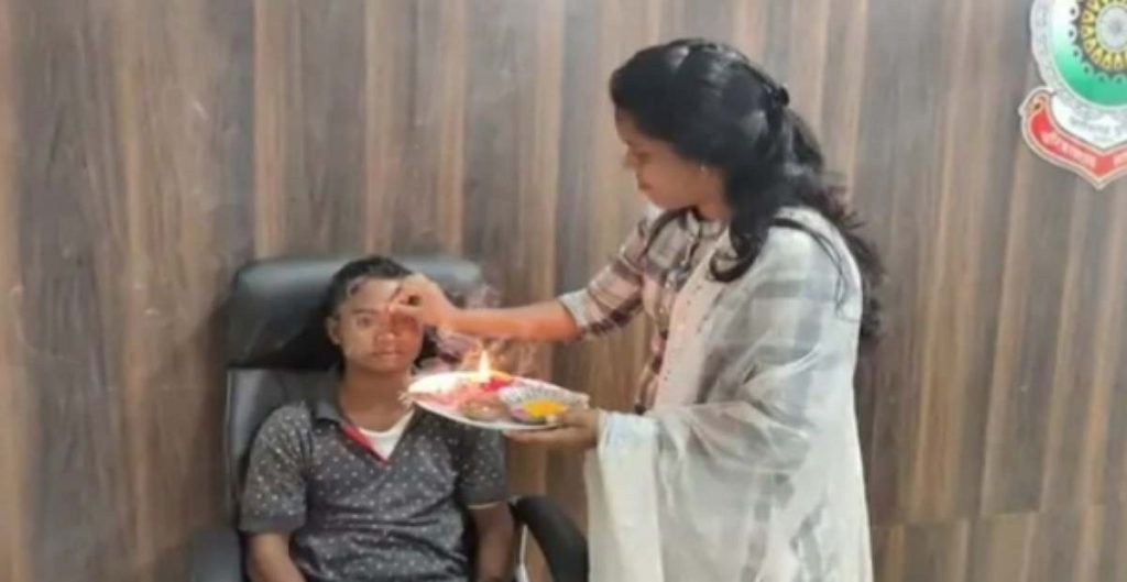 दंतेवाड़ा // छत्तीसगढ़ के दंतेवाड़ा जिले में डीएसपी अंजू कुमारी ने सरेंडर कर चुके नक्सली हिड़मा की कलाई में रक्षा की डोर बांधी हैं। उन्होंने हिड़मा से समाज की मुख्यधारा से ही जुड़कर और जनहित के काम करने का वचन लिया है।