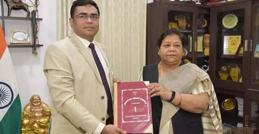 रायपुर// राज्यपाल अनुसुईया उइके को झीरम घाटी जांच आयोग की रिपोर्ट सौंपी गई। यह रिपोर्ट आयोग के सचिव एवं छत्तीसगढ़ उच्च न्यायालय के रजिस्ट्रार (न्यायिक) संतोष कुमार तिवारी ने सौंपी। यह प्रतिवेदन 10 वाल्यूम और 4184 पेज में तैयार की गई है। यह आयोग छत्तीसगढ़ उच्च न्यायालय के पूर्व न्यायाधीश प्रशांत कुमार मिश्रा के अध्यक्षता में गठित किया गया था। न्यायाधीश मिश्रा छत्तीसगढ़ उच्च न्यायालय के कार्यवाहक मुख्य न्यायाधीश भी थे तथा वर्तमान में आंध्रप्रदेश उच्च न्यायालय के मुख्य न्यायाधीश है।