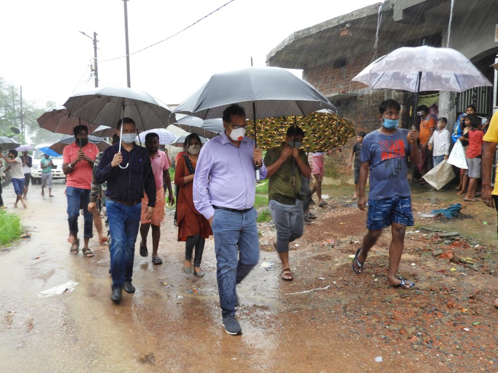 कलेक्टर भीम सिंह ने भारी वर्षा के बीच शहर के जलभराव वाले क्षेत्र छातामुड़ा-टिकरापारा बस्ती और कौहाकुण्डा पं.चिरंजीव दास नगर हाऊसिंग बोर्ड कालोनी का बरसते पानी में निरीक्षण किया, इन क्षेत्रों में बरसात का पानी और नाला उफान पर है। उन्होंने बरसते पानी के बीच इन क्षेत्र के निवासियों से बातचीत की और उनकी समस्याओं को सुना। कलेक्टर सिंह ने आयुक्त नगर निगम और एसडीएम को तत्काल बचाव एवं राहत कार्य प्रारंभ करने के निर्देश दिये। उन्होंने कहा कि जलभराव वाले क्षेत्र में निवासरत व्यक्ति यदि सुरक्षित स्थानों पर जाना चाहते है तो तत्काल उन्हें सुरक्षित ठिकानों पर पहुंचाने की व्यवस्था की जाये और आवश्यकता के अनुसार खाद्य सामग्री के पैकेट तैयार कर प्रभावित व्यक्तियों के बीच वितरित किया जाये।