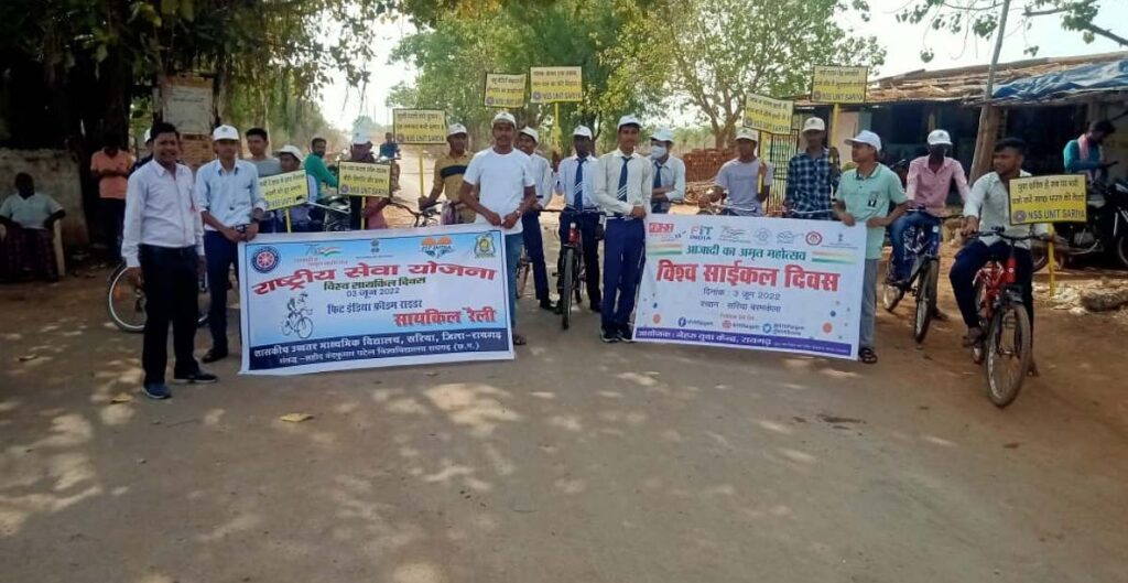 रायगढ़// शहीद नंद कुमार पटेल विश्वविद्यालय रायगढ़ से संबद्ध शासकीय उच्चतर माध्यमिक विद्यालय सरिया के राष्ट्रीय सेवा योजना के स्वयंसेवक छात्रों एवं नेहरू युवा केंद्र रायगढ़ के संयुक्त तत्वाधान में 3 जून 2022 को विश्व साइकिल दिवस के अवसर पर फिट इंडिया साइकिल रैली का आयोजन किया गया जिसमें मुख्य अतिथि प्रभारी प्राचार्य सी सौरंग के द्वारा हरी झंडी दिखाकर रैली का आगाज किया गया।
