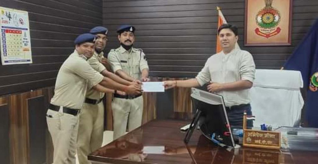 रायगढ़// पुलिस अधीक्षक अभिषेक मीना द्वारा सोशल पुलिसिंग एवं कानून व्यवस्था निष्पादन के कार्यों में अच्छा प्रदर्शन करने वाले पुलिसकर्मियों को लगातार प्रोत्साहित किया जा रहा है। बीते दिनों सरिया थाना क्षेत्र अन्तर्गत लोहे का कत्ता दिखाकर मोटर सायकल की लूटपाट कर भाग रहे हथियारबंध आरोपी को थाना पुसौर के आरक्षक एवं डॉयल 112 स्टाफ द्वारा निडरतापूर्वक खेत में दौड़ाकर पकड़ा गया था। जिसके लिए थाना पुसौर के दोनों आरक्षकों एवं डॉयल 112 के वाहन चालक का हौसला बढाने एसपी अभिषेक मीना द्वारा नकद राशि का इनाम दिया गया था। इसी दौरान उन्होंने कोसीर क्षेत्र अन्तर्गत लूट के आरोपितों को पकड़ने वाले आरक्षकों को पुरस्कृत करने की घोषणा किया था।