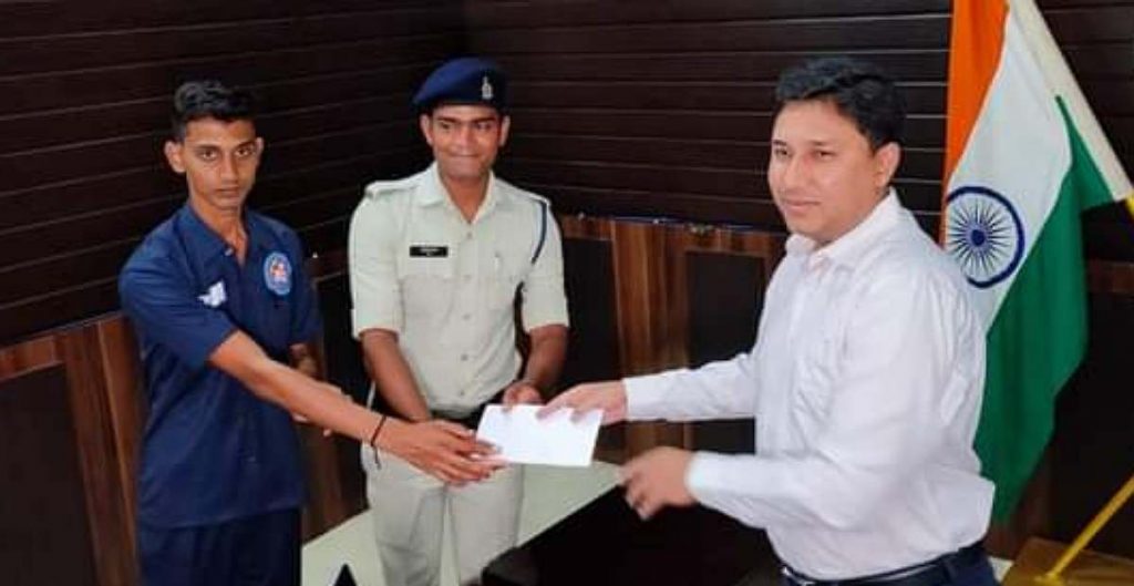 रायगढ़// लूटपाट के हथियारबंद आरोपी को निडरतापूर्वक पकड़ने वाले पुसौर राइनो सहित 3 स्टाफ को एसपी अभिषेक मीना ने 5000 का नकद इनाम देकर हौसला अफजाई किया है।