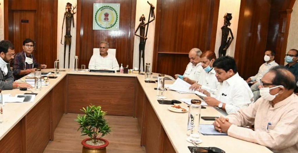 रायपुर/ मुख्यमंत्री भूपेश बघेल की अध्यक्षता में आज यहां उनके निवास कार्यालय में आयोजित बैठक में वन विभाग के कार्यों की समीक्षा की गई. बैठक में कृषि एवं जलसंसाधन मंत्री रवींद्र चौबे, वनमंत्री मोहम्मद अकबर, नगरीय प्रशासन मंत्री शिव कुमार डहरिया, स्कूल शिक्षा मंत्री डॉ. प्रेमसाय सिंह टेकाम, वीडियो कांफ्रेंसिंग के जरिए अम्बिकापुर से स्वास्थ्य मंत्री टी एस सिंहदेव शामिल हुए.