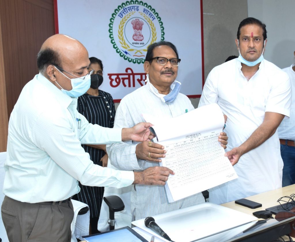 रायपुर// स्कूल शिक्षा मंत्री डॉ. प्रेम साय सिंह टेकाम ने आज छत्तीसगढ़ माध्यमिक शिक्षा मण्डल द्वारा आयोजित हायर सेकेण्डरी स्कूल सर्टिफिकेट परीक्षा वर्ष 2021 का परिणाम ऑनलाईन घोषित किया। घोषित परीक्षाफल 97.43 प्रतिशत रहा। इसमें उत्तीर्ण बालिकाओं का प्रतिशत 98.06 और बालकों का प्रतिशत 96.69 है। इस अवसर पर संसदीय सचिव द्वय विकास उपाध्याय और द्वारिकाधीश यादव, प्रमुख सचिव स्कूल शिक्षा डॉ. आलोक शुक्ला, मण्डल के सचिव प्रोफेसर व्ही.के.गोयल, मण्डल के सदस्य और अधिकारी-कर्मचारी भी उपस्थित थे।