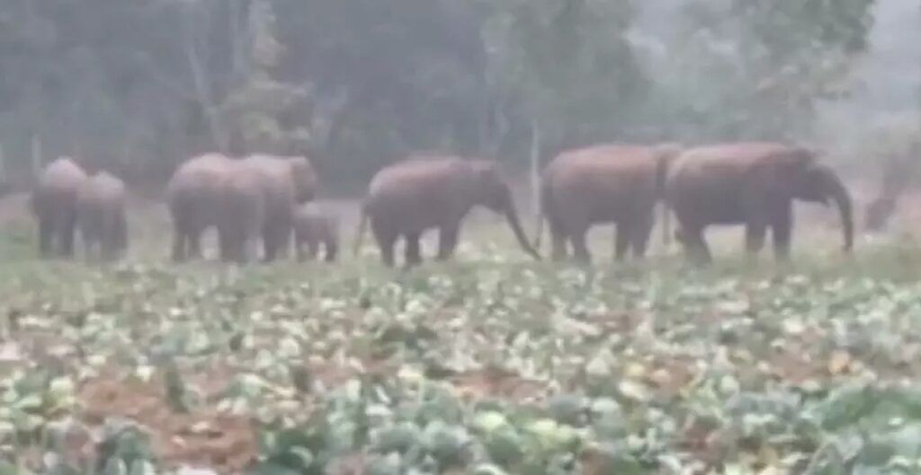 हाथियों का आतंक : खेत में लगी गोभी की बाड़ी को पहुंचाया नुकसान, दहशत के साय में किसान..