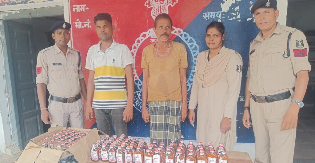 मुंगेली//सरगांव- पुलिस अधीक्षक मुंगेली चन्द्रमोहन सिंह (IPS.) एवं अतिरिक्त पुलिस अधीक्षक महोदय, मुंगेली प्रतिभा तिवारी के द्वारा थाना सरगांव क्षेत्रांतर्गत अवैध रूप से चल रहे जुआ सट्टा आबकारी की कार्यवाही हेतू दिशा निर्देश प्राप्त होने पर अनुविभागीय अधिकारी (पुलिस) पथरिया, एम एम मिंज के मार्गदर्शन पर मुखबीर की सूचना प्राप्त होने पर थाना प्रभारी निरीक्षक प्रमोद डनसेना के आदेश गवाह के साथ ग्राम बावली जस पटेल के घर के पास अवैध रूप से शराब ब्रिकी करने हेतू लेकर आते रास्ते हुए तत्काल घेराबंदी कर ग्राम बावली जस पटेल के घर के पास आरोपी 1. जसराम पटेल पिता पवन पटेल उम्र 60 साल साकिन बावली थाना सरगांव 2. दिनेश निर्मलकर पिता विश्वनाथ उम्र 33 साल साकिन सावा थाना सरगांव को रंगे हाथों गिरफ्तार किया गया। जिसके कब्जे से सफेद रंग के बोरी मे 47 नग एंव पीला रंग के बोरी मे 70 नग गोवा व्हीस्की अंग्रेजी शराब प्रत्येक में 180 एम.एल. वाली कांच की शीशी में भरा हुआ शीलबंद शराब मिला प्रत्येक शीशी मे for Sale in madhyapradesh only लिखा हुआ कुल 117 नग जुमला 21.06 ब्लक लीटर किमती 12870 रूपये एंव घटना में प्रयुक्त मोटरसायकल क्रमांक CG10 EM 1215 किमती 15000 रूपये का मिला को गवाहो के समक्ष वजह सबूत में जप्त किया गया है। आरोपीयो को धारा 34 (2) 59 क आबकारी अधिनियम के तहत गिरफ्तार कर न्यायिक रिमाण्ड पर जेल भेजा गया है। इस कार्यवाही मे थाना प्रभारी निरीक्षक प्रमोद डनसेना