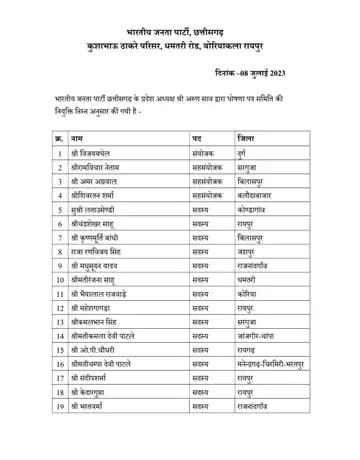 रायपुर/ भारतीय जनता पार्टी ने चुनावी घोषणा पत्र समिति तय कर दी है। सांसद विजय बघेल को इस समिति का संयोजक , रामविचार नेताम और अमर अग्रवाल को सह संयोजक बनाया गया है । 31 अलग-अलग नेताओं को इस घोषणापत्र समिति में सदस्य की जिम्मेदारी दी गई है।