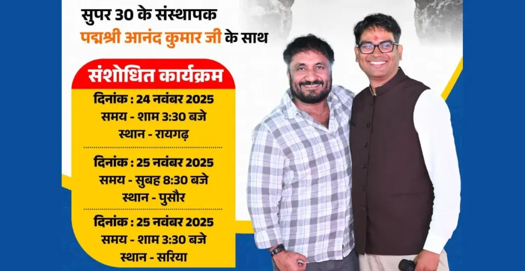 कैरियर मार्गदर्शन में हुआ बदलाव, अब 24 और 25 नवम्बर को रायगढ़, पुसौर एवं सरिया में होगा भव्य आयोजन, वित्त मंत्री चौधरी की पहल से युवाओं को मिलेगा मार्गदर्शन..