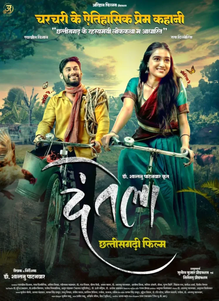 रायपुर// सच्ची घटनाओं से प्रेरित छत्तीसगढ़ी हॉरर कॉमेडी फिल्म दंतेला आज रिलीज हो गई है। जल संरक्षण पर आधारित बहुप्रतीक्षित फिल्म दंतेला 5 अन्य भाषाओं हिंदी, ओडिया, भोजपुरी, तमिल और तेलुगु में भी रिलीज हुई। डेढ़ साल से फिल्म के ट्रेलर रिलीज से पहले टीजर और गाने पूरे मध्य भारत में धमाल मचाए हुए है। फिल्म के गीत-संगीत ठेठ छत्तीसगढ़ी विधा में रचे गए हैं जो कि फिल्म का सबसे बड़ा आकर्षण है।