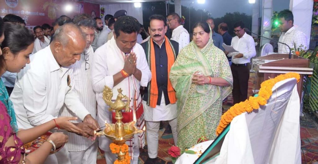मुख्य अतिथि सांसद राठिया, विशिष्ट अतिथि एवं अन्य वरिष्ठ जनप्रतिनिधि एवं अधिकारियों ने छत्तीसगढ़ महतारी के समक्ष दीप प्रज्वलित कर राज्योत्सव का शुभारंभ किया। इस अवसर पर अन्य अतिथि एवं अधिकारीगण सहित बड़ी संख्या में स्कूली बच्चे ग्रामीण और शहरी उपस्थित थे।