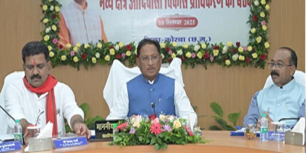 कोरबा : छत्तीसगढ़ के मुख्यमंत्री विष्णु देव साय और उनके मंत्रिमंडल के द्वारा कोरबा कलेक्ट्रेट में मध्य क्षेत्र आदिवासी विकास प्राधिकरण की बैठक ली गई। इस बैठक के दौरान जिले के विकास के संबंध में विभिन्न निर्माण कार्यों को लेकर दिए गए प्रस्तावों पर मुहर लगाई गई। बैठक के उपरांत मुख्यमंत्री ने इन घोषणाओं के संबंध में जानकारी साझा की।