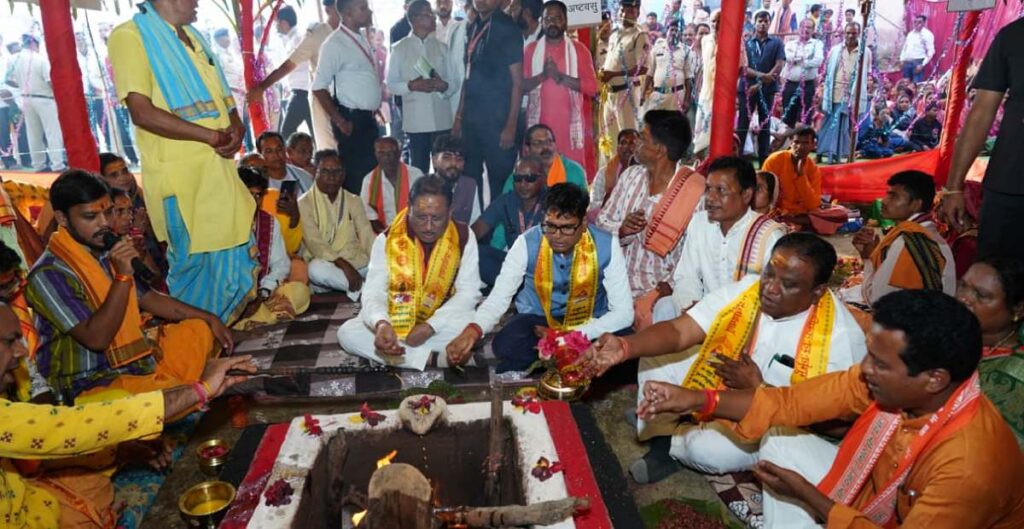रायगढ़// मुख्यमंत्री विष्णुदेव साय लैलूंगा विकासखंड के झगरपुर में आयोजित श्री श्री रणेश्वर रामचण्डी मंदिर की प्राण-प्रतिष्ठा कार्यक्रम के वेदी पूजन कार्यक्रम में सम्मिलित हुए। यहां उन्होंने माता रणेश्वर रामचण्डी का दुग्धाभिषेक कर प्रदेशवासियों के सुख-शांति, समृद्धि और खुशहाली की कामना की।