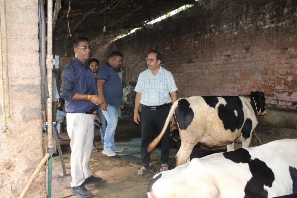 कलेक्टर डॉ. संजय कन्नौजे ने ग्राम झनकपुर पहुंचकर पशुपालक किसान लखपति दीदी मनोरमा नायक और जीवनलाल नायक के डेयरी का निरीक्षण किया। बाड़े में 5 एचएफ (जर्सी) गाय और उनके बछड़े मौजूद थे। दूध दुहने की मशीन, गोबर गैस सेटअप, चारे की व्यवस्था और स्वच्छता देखकर उन्होंने संतोष जताया। कलेक्टर ने कहा कि ग्रामीण इस तरह की डेयरी व्यवस्था अपनाकर आत्मनिर्भर बन सकते हैं। जानकारी मिली कि परिवार प्रतिदिन 50 लीटर दूध गांव में बेचकर आय अर्जित कर रहा है और इसी से अपनी बेटी की पढ़ाई दिल्ली में करवा रहा है।