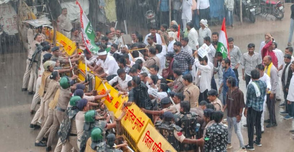 भारी बारिश के बावजूद कांग्रेस कार्यकर्ता पूरे जोश और उत्साह के साथ कलेक्ट्रेट पहुंचे। इस प्रदर्शन की तैयारी कई दिनों से चल रही थी और जिले भर से कांग्रेस जन बड़ी संख्या में इसमें शामिल हुए।