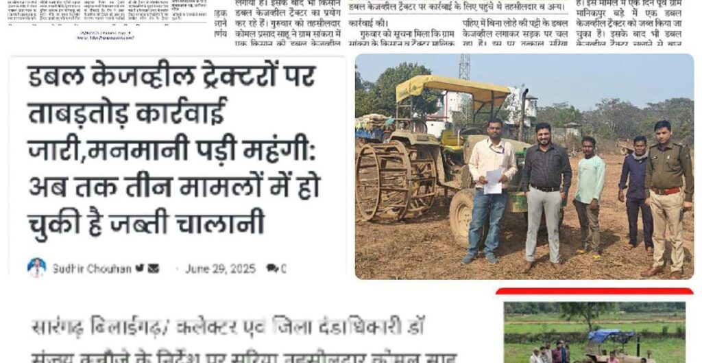 डबल कैज़व्हील युक्त ट्रैक्टर सड़को पर चलाने से होंगी जब्ती और चालानी कार्यवाही – कोमल साहू तहसीलदार..