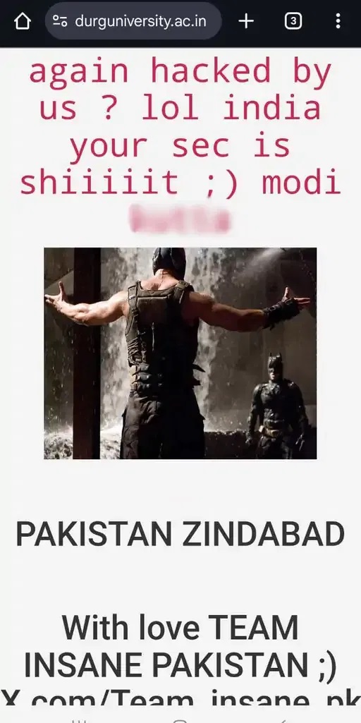 दुर्ग : हेमचंद यादव विश्वविद्यालय (दुर्ग यूनिवर्सिटी) की वेबसाइट सोमवार को एक बार फिर हैक हो गई. पाकिस्तानी हैकर्स ने यूनिवर्सिटी की वेबसाइट पर पीएम मोदी को गाली लिखी हुई पोस्टर अपलोड कर अपने मौजूदगी का सबूत दे दिया. सोमवार को हैक हुई वेबसाइट शाम तक रिस्टोर कर ली गई.