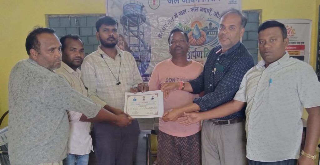 कार्यक्रम के अगले चरण में पानी की गुणवत्ता एवं बीमारियों के प्रति जागरूकता लाने हेतु जल वाहिनियों को एफटीके किट के माध्यम से जल परीक्षण करना सिखाया गया। तत्पश्चात ग्राम पंचायत सरपंच, सचिव, पंचगण एवं समस्त ग्रामवासियों को ग्राम पंचायत हस्तांतरण कर प्रमाण पत्र से सम्मानित किया गया।