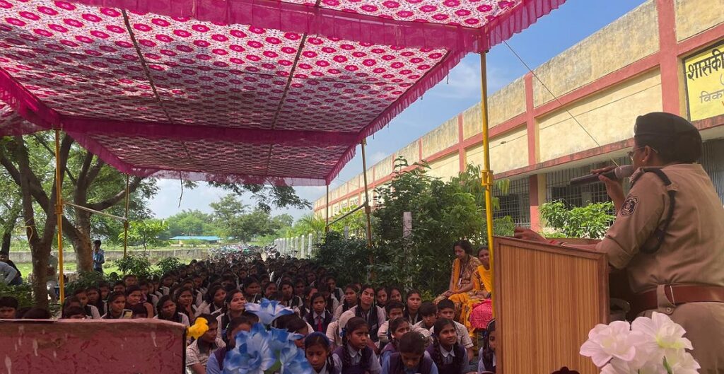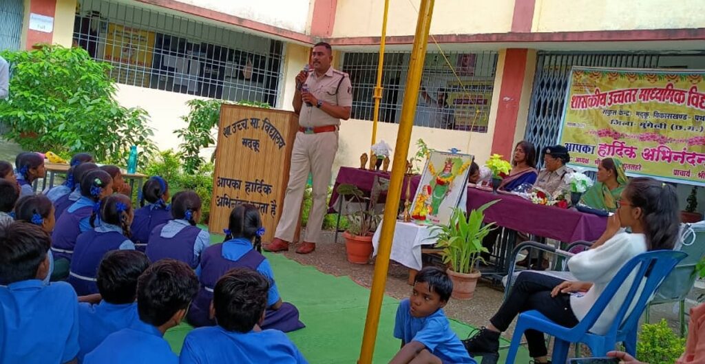 मुंगेली/सरगांव// पुलिस अधीक्षक मुंगेली चन्द्रमोहन सिंह (भा.पु.से.) एवं अतिरिक्त पुलिस अधीक्षक मुंगेली प्रतिभा पांडेय के द्वारा थाना सरगांव क्षेत्रांतर्गत उडान अभियान चलाकर उडान अभियान के अंतगर्त जानकरी दिशा निर्देश दिया गया। जिस पर उप पुलिस अधीक्षक मुख्यालय मुंगेली साधना सिंह के उपस्थिति में आज दिनांक 12.07.2023 को गांम मदकु के शासकिय उच्चतर माध्यमिक स्कुल में उडान अभियान के अन्तर्गत अभिव्यक्ति एप, हमर बेटी हमर मान टोल फ्री नंबर गुड टच, बैड टच, बालक बालिका अपराध संबंधी जानकारी एवं कानूनी अधिकार सोशल मिडिया अवरनेयश यातायात जागरूकता पुलिस की कार्यप्रणाली की जानकारी आत्मरक्षा इत्यादी से संबंधीत जागरूक कार्यक्रम कर जानकारी दिया गया।