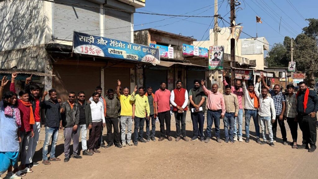 मुंगेली//सरगांव — छत्तीसगढ़ राज्य केबस्तर ,कांकेर जिले में हाल ही में हुई धार्मिक हिंसा एवं नामांतरण विवाद के विरोध में बुधवार, 24 दिसंबर 2025 को सर्व समाज, सामाजिक एवं धार्मिक संगठनों के संयुक्त आह्वान पर पूरे प्रदेश में छत्तीसगढ़ बंद का आयोजन किया गया। इस बंद का असर मुंगेली जिले के नगर पंचायत सरगांव में भी देखने को मिला, जहां नगर पूर्णतः बंद रहा।
