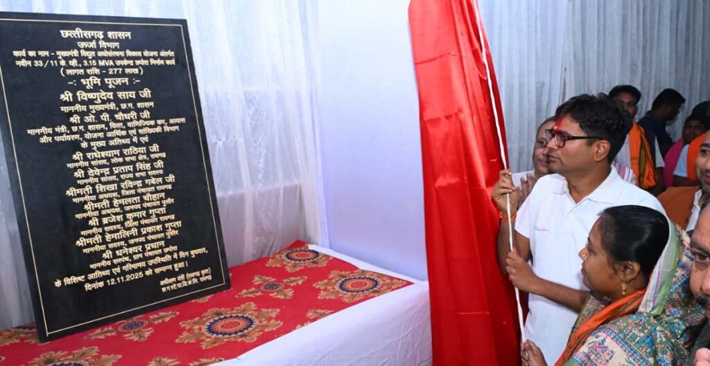 रायगढ़// मुख्यमंत्री विष्णुदेव साय की मंशानुरूप आम जनों की सुविधाओं के विस्तार को दृष्टिगत रखते हुए जिले में सड़क, विद्युत सहित अधोसंरचना विकास के कार्य सतत रुप से जारी है। इसी क्रम में 12 नवम्बर को मुख्यमंत्री अधोसंरचना विकास योजना अंतर्गत वित्त मंत्री एवं रायगढ़ विधायक ओ.पी.चौधरी ने ग्राम छपोरा में 3.15 एमवी, क्षमता वाले 33/11 के.वी. उपकेंद्र का भूमि पूजन एवं शिलान्यास किया।