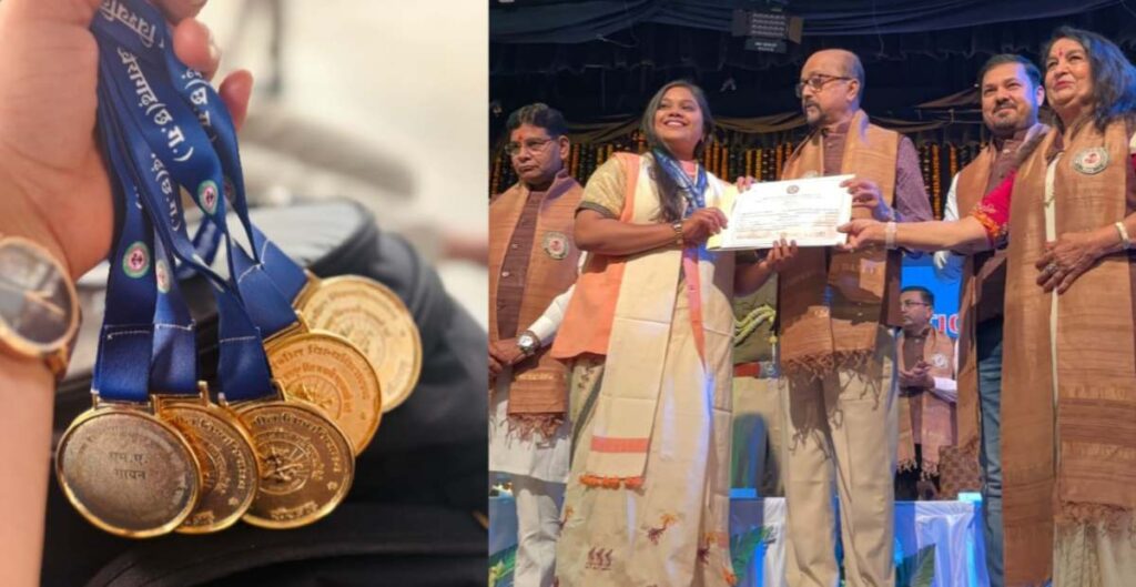 रायगढ़// ग्रामीण परिवेश में पली-बढ़ी पुसौर जनपद के टिनमिनी गांव की होनहार बेटी नम्रता गुप्ता ने संगीत के क्षेत्र में बड़ी उपलब्धि हासिल कर जिले का नाम रोशन किया है। इंदिरा कला संगीत विश्वविद्यालय खैरागढ़ में आयोजित 17वें दीक्षांत समारोह में नम्रता ने एमपीए गायन सत्र 2023–24 में सर्वोच्च अंक प्राप्त कर राज्यपाल रामेन डेका के हाथों 5 स्वर्ण पदक हासिल किए। इस उपलब्धि से न सिर्फ उनका गांव बल्कि पूरा जिला गौरवान्वित हुआ है।