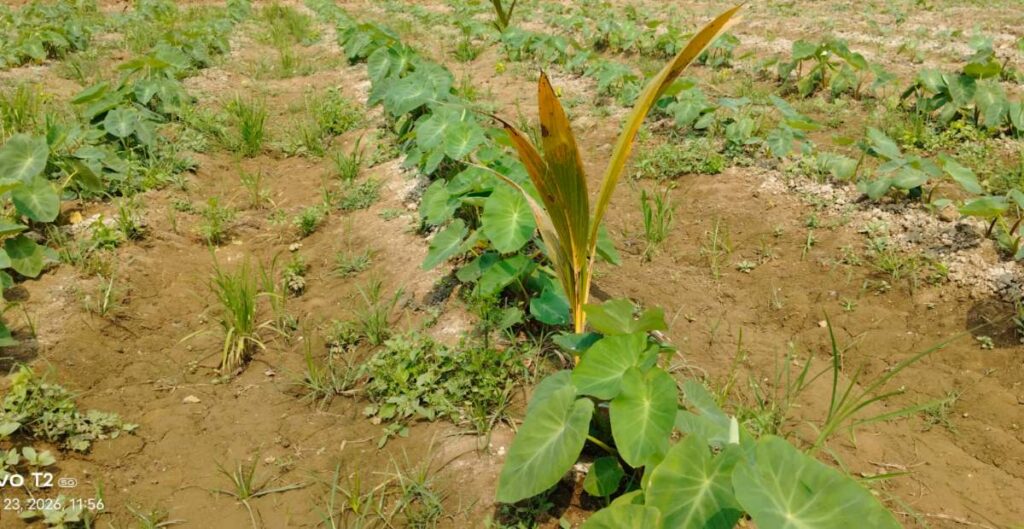 नारियल के पौधों के बीच खाली जगह को खाली नहीं छोड़ा गया। कृषि और उद्यानिकी विभाग से मार्गदर्शन लेकर क्रॉस फॉर्मिंग की शुरुआत की गई। संतोषिनी गुप्ता (RHEO) की सलाह पर गेंदा, अरबी, टमाटर और धनिया की खेती साथ में की गई। नारियल रोपण के एक माह बाद गेंदा और अरबी लगाई गई।