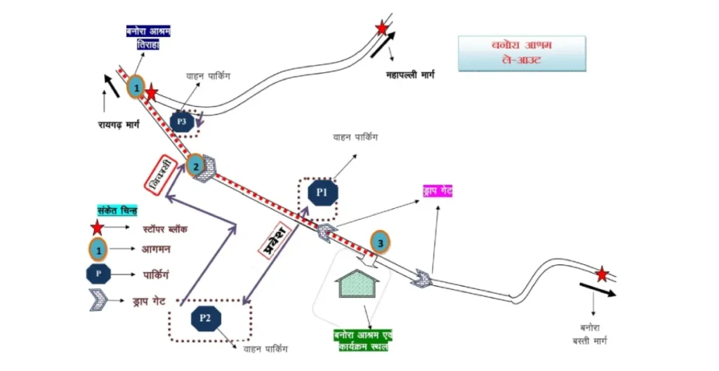 इसी क्रम में गुरु पूर्णिमा के दिन ग्राम बनोरा स्थित अघोर गुरूपीठ बनोरा आश्रम में आने वाले श्रद्धालुओं के लिए यातायात पुलिस द्वारा 3 अलग-अलग पार्किंग स्थलों की व्यवस्था की गई है। इन पार्किंग स्थलों पर दोपहिया एवं चारपहिया वाहनों के लिए उचित स्थान सुनिश्चित किया गया है ताकि दर्शन हेतु आने-जाने में किसी प्रकार की बाधा न हो और यातायात प्रणाली भी सुचारु बनी रहे।