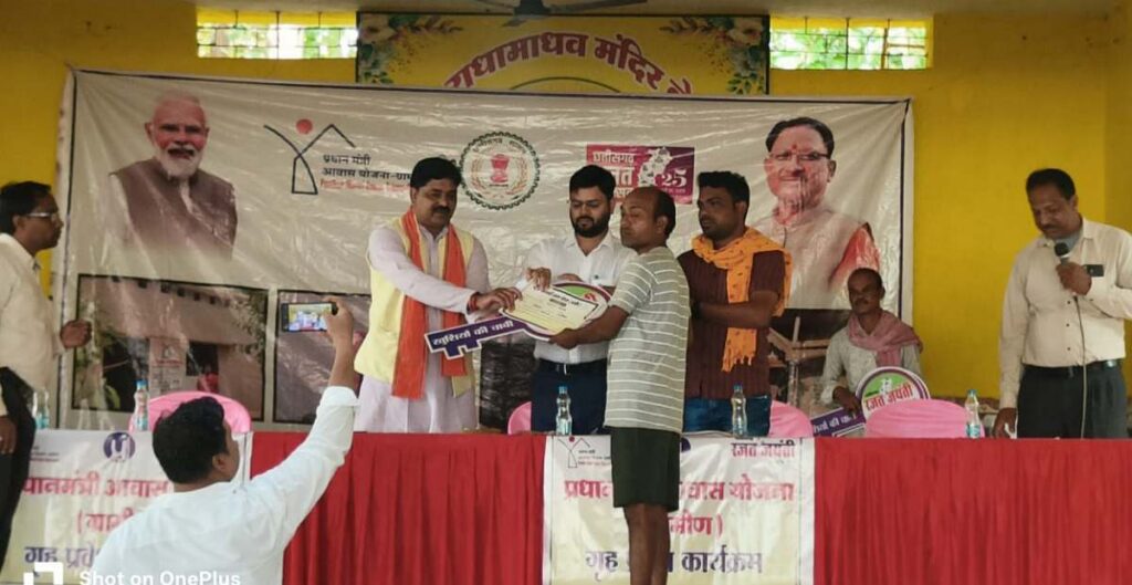 राज्य स्थापना की 25वीं वर्षगांठ पर ग्राम लेध्रा में आवास हितग्राहियों का सम्मान, जनपद सीईओ अजय पटेल ने बांटे प्रशस्ति पत्र और प्रतीकात्मक चाबी..