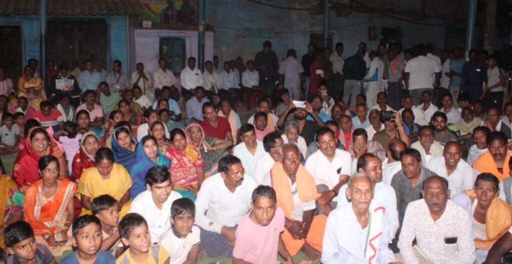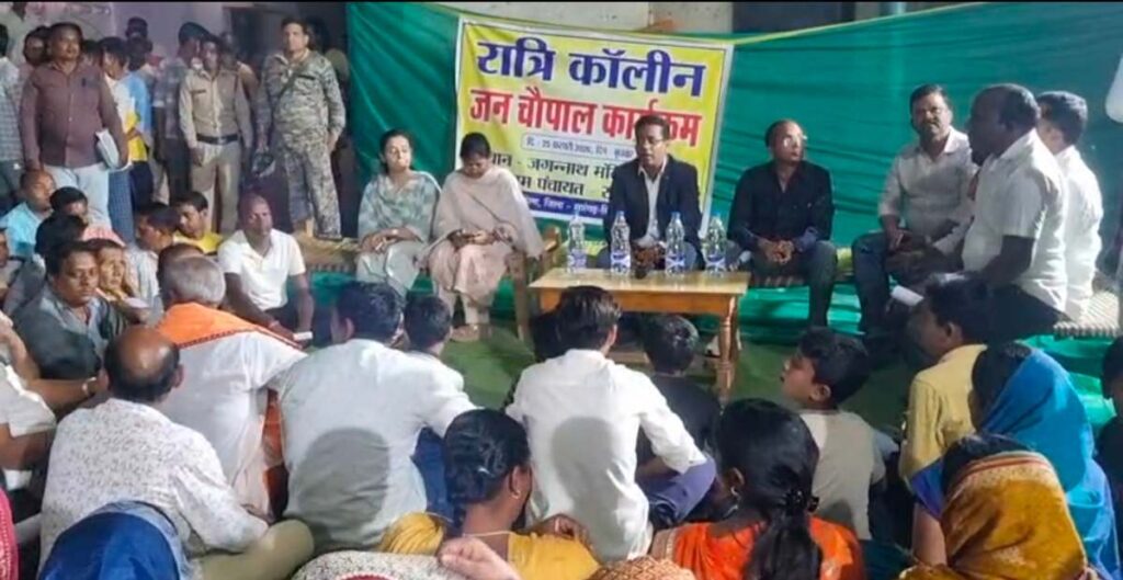 सारंगढ़ बिलाईगढ़ जिले के सबसे दूरस्थ सांकरा गांव, ओड़िशा से घिरा है, जहां बुधवार को रात्रिकालीन जनचौपाल लगाया गया था। जिला एवं ब्लाक अधिकारी भी नागरिकों की मांग और समस्या से रूबरू हुए। इस पहल का उद्देश्य केंद्र एवं राज्य सरकार की योजनाओं का लाभ अंतिम व्यक्ति तक पहुंच रहा है या नहीं, इसकी जमीनी हकीकत जानना है। चौपाल में ग्रामीणों से मांग और शिकायत प्राप्त हुआ है जिसे गंभीरतापूर्वक जिला प्रशासन द्वारा निराकरण किया जाएगा। – कलेक्टर डॉ संजय कन्नौजे