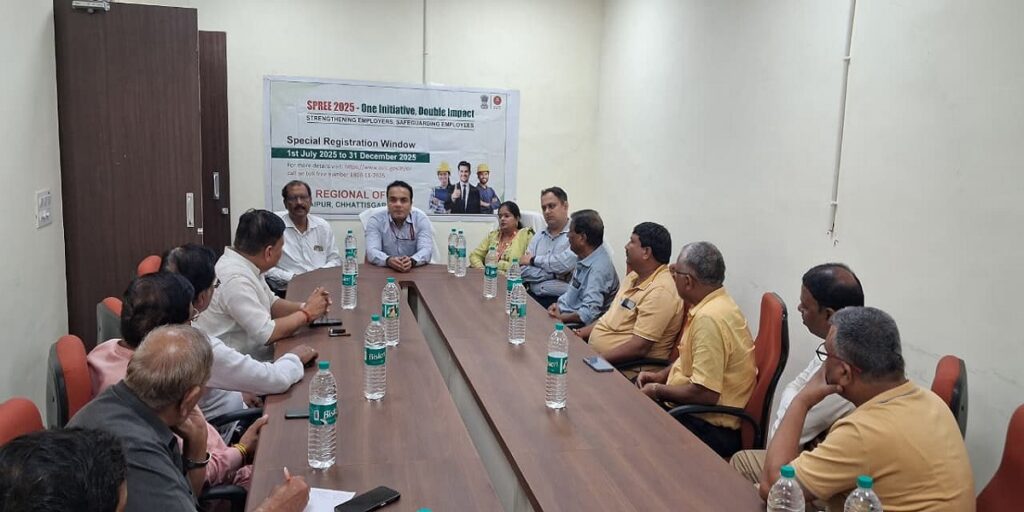 कोरबा : कर्मचारी राज्य बीमा अस्पताल, डिंगनापुर, कोरबा के कॉन्फ्रेंस हॉल में SPREE 2025 योजना की विस्तृत जानकारी देने हेतु एक महत्वपूर्ण बैठक का आयोजन किया गया। इस बैठक में क्षेत्रीय कार्यालय, कर्मचारी राज्य बीमा निगम (ईएसआईसी) रायपुर के अधिकारीगण भूपेंद्र कुमार क्षेत्रीय निदेशक, डॉ. आर.एस. देवगन चिकित्सा अधीक्षक, डॉ. श्वेता मिश्रा राज्य चिकित्सा अधिकारी, रत्नेश राजन्य उप निदेशक, जितेन्द्र कुमार सिंह शाखा प्रबंधक कोरबा, तथा कोरबा जिले की विभिन्न प्रतिष्ठित कंपनियों के नियोक्ता उपस्थित रहे।