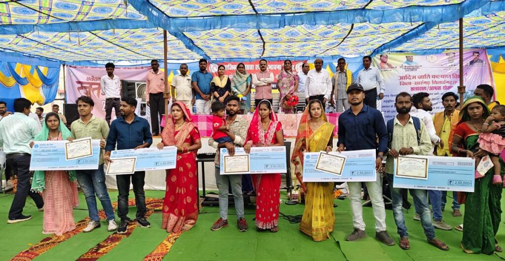 इस अवसर पर हितग्राही प्रदीप आजाद एवं उषा कर्ष, ओमप्रकाश चौहान एवं अमना साहू, नंदलाल रात्रे एवं किरन निषाद, राहूल सारथी एवं निकिता गिरी, धनेश्वर प्रसाद साहू एवं कुलेश्वरी, लक्ष्मण घृतलहरे एवं सुस्मिता जायसवाल, दिलीप चौहान एवं यामिनी वैष्णव को अंतर्जातीय विवाह प्रोत्साहन राशि 2 लाख 50 हजार रुपए का प्रतीकात्मक चेक एवं प्रशस्ति पत्र वितरण किया गया।