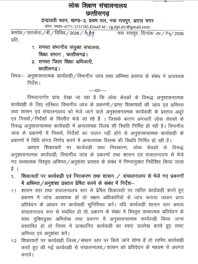 रायपुर// दागी शिक्षकों व शिक्षा विभाग के अधिकारियों-कर्मचारियों पर बड़ी कार्रवाई होने वाली है। डीपीआई ने इस संबंध में सभी जेडी और डीईओ को कड़ा पत्र जारी किया है। डीपीआई ने अपने पत्र में इस बात पर ऐतराज जताया है कि दागी अधिकारी-कर्मचारियों के खिलाफ कार्रवाई प्रस्ताव भेजने में विभाग की तरफ से लगातार लापरवाही बरती जा रही है।