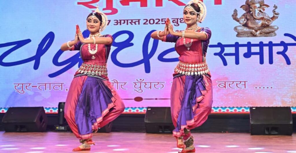 भिलाई से आईं प्रख्यात नृत्यांगना और भरतनाट्यम डॉ. राखी रॉय ने अपने शिष्यों के साथ भरतनाट्यम की शानदार प्रस्तुति से रामलीला मैदान में मौजूद दर्शकों को भावविभोर कर दिया। उनकी प्रस्तुति में भरतनाट्यम की पारंपरिक गरिमा, गहन अभिव्यक्ति और अद्भुत लयताल का ऐसा संगम देखने को मिला जिसने हर किसी के मन को छू लिया। डॉ. रॉय ने अपने नृत्य में भारतीय शास्त्रीय नृत्य की गहराई को उजागर करते हुए विभिन्न भावों और मुद्राओं के माध्यम से भक्ति और रसमयता की सजीव छटा बिखेरी। उनकी प्रस्तुति में नृत्य की शुद्धता, कथ्य की संवेदनशीलता और नृत्य सौंदर्य की छाप स्पष्ट दिखाई दी। डॉ. राखी रॉय ने अपने शिष्यों के साथ भगवान शिव के नटराज के विभिन्न रूपों पर आधारित प्रस्तुति, अर्धनारीश्वर, मां जननी आदि पर आधारित आकर्षक प्रस्तुति दी। डॉ. राखी रॉय के साथ उनके शिष्य दुष्यंत साहू, पलक उपाध्याय, अम्बे उपाध्याय, सृजन बनर्जी, साध्वी अवधूत, पद्मजा मंजिल पिल्ले, शर्मिष्ठा घोष, नारायणी पांडे, ऑरेल एन जॉनसन और कुमारी बनर्जी ने मनमोहक प्रस्तुति दी।