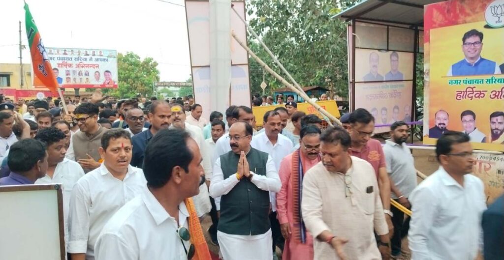 सरिया में 30 करोड़ 44 लाख के विकास कार्यों का लोकार्पण, अरुण साव के मंच पर चढ़ते ही गूंजा “सांय-सांय” का नारा..