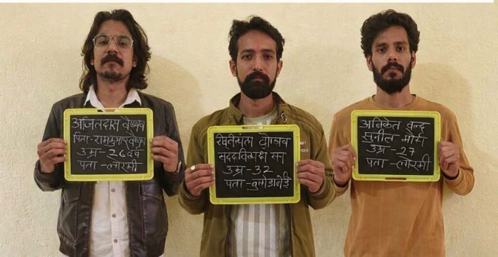 पुलिस और वन विभाग की संयुक्त टीम ने इस मामले में तीन आरोपियों को गिरफ्तार किया है। गिरफ्तार किए गए आरोपियों में अजीत वैष्णव (26), अनिकेत (27) और विक्रांत वैष्णव (36) शामिल हैं। इनके कब्जे से दो एयर राइफल और एक टाटा सफारी स्टॉर्म वाहन जब्त किया गया है। तीनों के खिलाफ वन्यप्राणी संरक्षण अधिनियम 1972 की संबंधित धाराओं के तहत मामला दर्ज कर उन्हें न्यायालय में पेश किया गया, जहां से उन्हें न्यायिक रिमांड पर जेल भेज दिया गया।