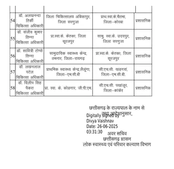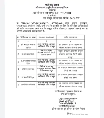 ट्रांसफर ब्रेकिंग : स्वास्थ्य विभाग ने 100 डॉक्टर्स का किया ट्रांसफर : नई जगहों पर पोस्टिंग का आदेश जारी, देखिये पूरी लिस्ट..