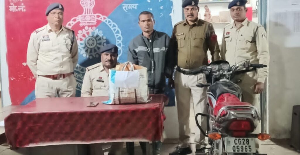 मुंगेली//सरगांव – मुंगेली पुलिस अधीक्षक भोजराम पटेल (भा.पु.से.) द्वारा जिले में असामाजिक तत्वों एवं मादक पदार्थों की अवैध बिक्री व तस्करी पर लगाम लगाने हेतु चलाए जा रहे “ऑपरेशन बाज़” के अंतर्गत लगातार मुकम्मल कार्रवाई की जा रही है। इसी क्रम में अतिरिक्त पुलिस अधीक्षक नवनीत कौर छाबड़ा एवं उप पुलिस अधीक्षक पथरिया नवनीत पाटिल के मार्गदर्शन में सायबर सेल और थाना सरगांव की संयुक्त टीम ने एक तस्कर को गिरफ्तार कर बड़ी सफलता प्राप्त की है मोटरसायकल से ले जा रहा था गांजा, मोहभठ्ठा–पेण्ड्री मोड़ में दबोचा दिनांक 02.12.2025 को मुखबिर से सूचना मिली कि एक व्यक्ति मोटरसायकल होंडा सीडी 110 ड्रीम डीलक्स (क्रमांक CG 28 Q 5965, काला रंग) से नांदघाट से सरगांव–पथरिया की ओर गांजा परिवहन करने वाला है। सूचना पर पुलिस टीम ने तुरंत घेराबंदी कर मोहभठ्ठा पेण्ड्री मोड़ पर उक्त वाहन को रोका वाहन चालक रामकृपाल बंसल उर्फ दिनेश उर्फ पाड़े (उम्र 21 वर्ष), निवासी शांतिनगर पथरिया की तलाशी लेने पर गवाहों के समक्ष 4 पैकेट में कुल 3 किलो 972 ग्राम, मूल्य लगभग 40,000 रुपये का मादक पदार्थ गांजा बरामद किया गया।साथ ही परिवहन में प्रयुक्त मोटरसायकल मूल्य 25,000 रुपये भी जब्त कर कुल 65,000 रुपये का माल कब्जे में लिया गया।